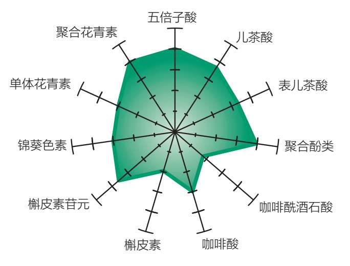 这张雷达图显示的是一瓶黑皮诺酒所含的酚类物质分析:
