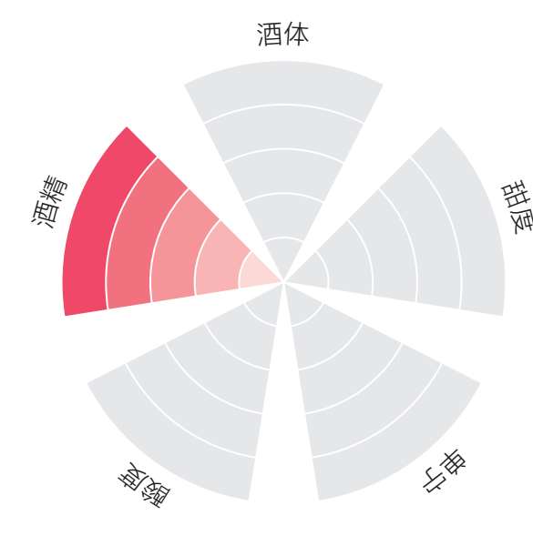 以某种葡萄酒的单宁、酒精和甜度与其他葡萄酒相比较为基础,本书将葡萄酒的酒体分为1至5级。